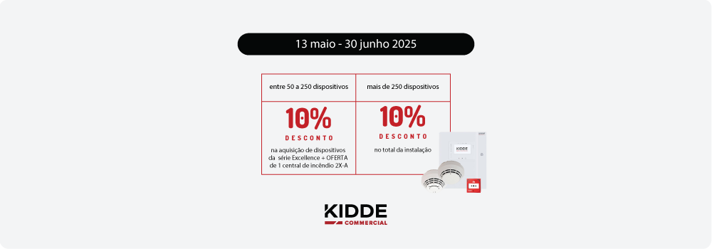 São abrangidos pela campanha todos os dispositivos Kidde Commercial da série Excellence, sendo o desconto de 10% aplicado ao PVR.